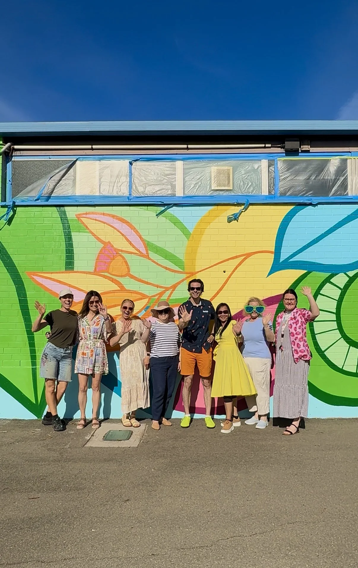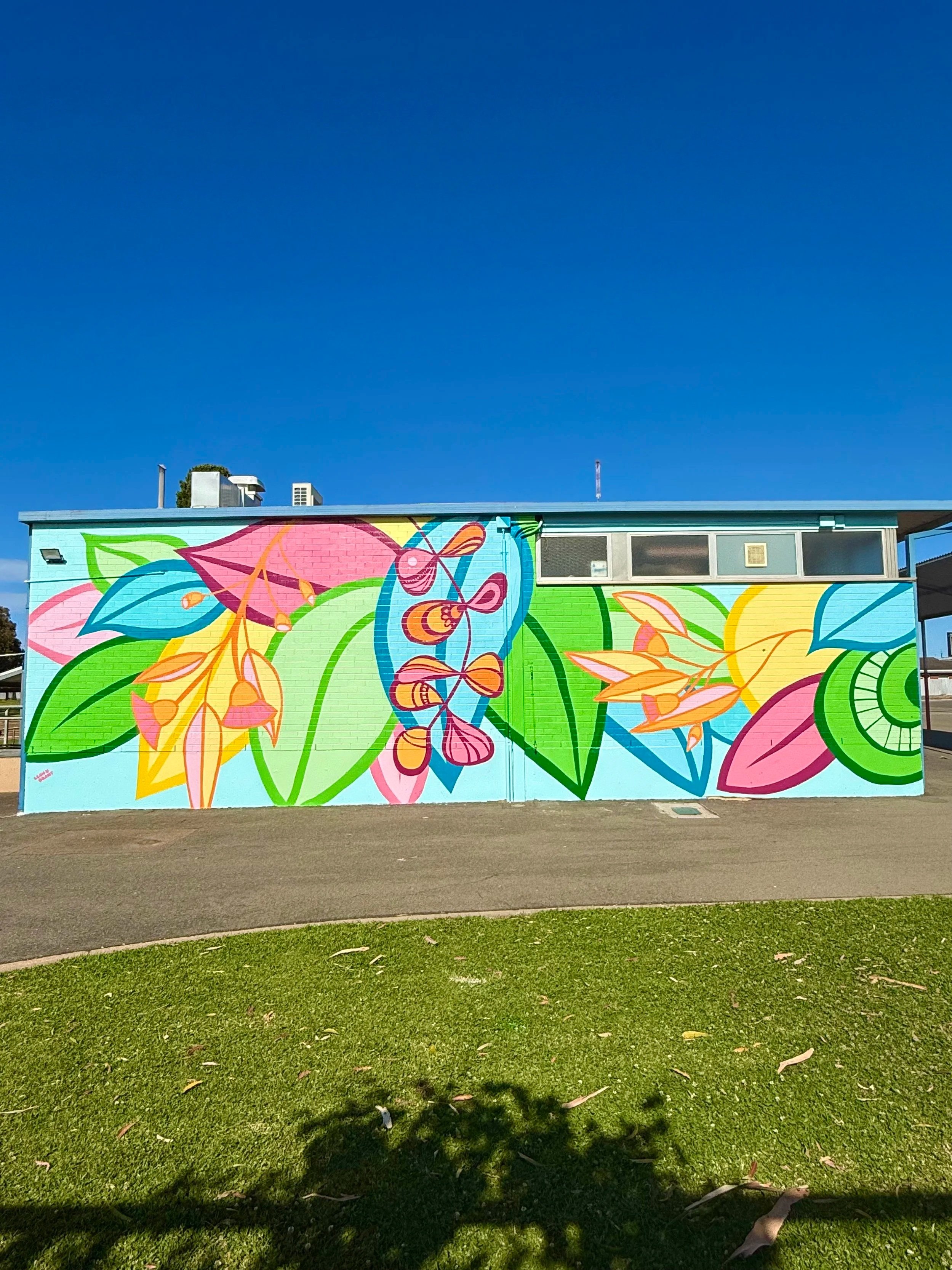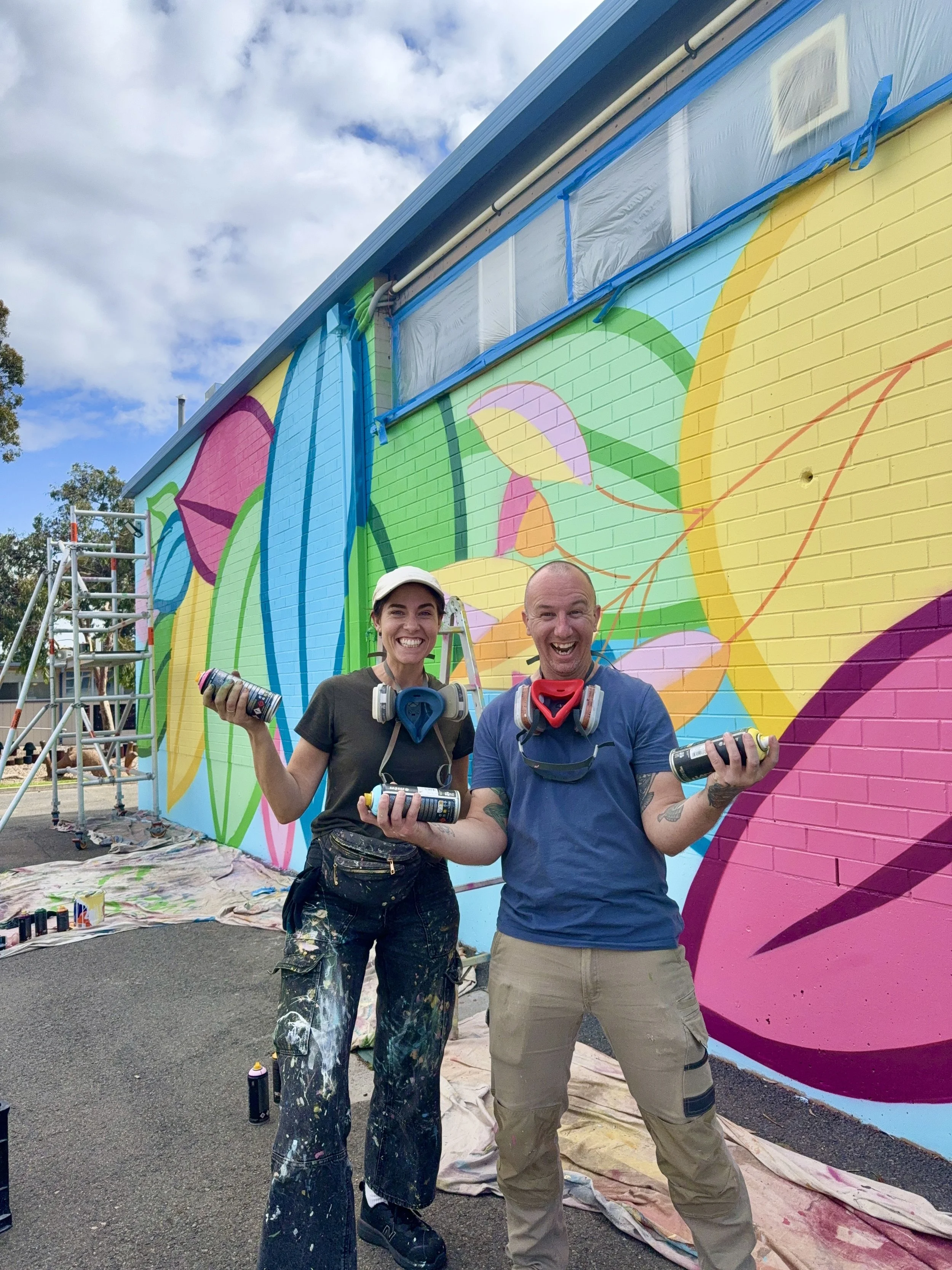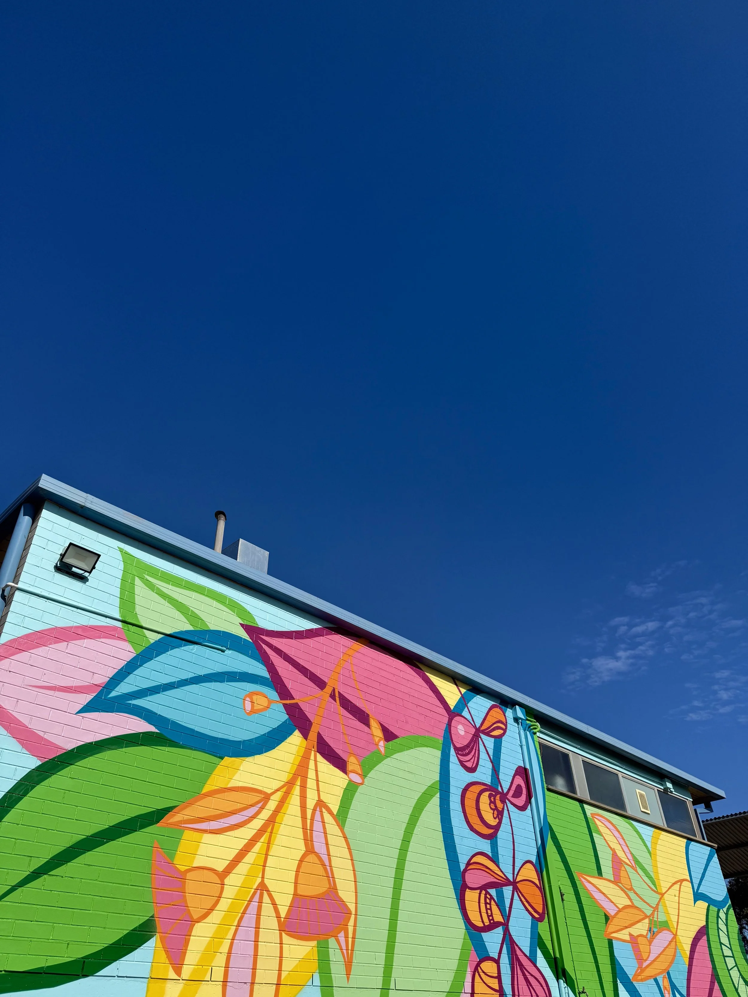 In December 2025, I had the privilege of painting a mural at Reynella South Primary School. The school had already organised the perfect location, but there was one small challenge, an old, unused window in the middle of the wall. Before I arrived, the team arranged for it to be professionally bricked up. Now that’s commitment to wall prep!