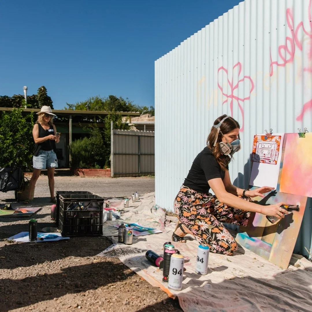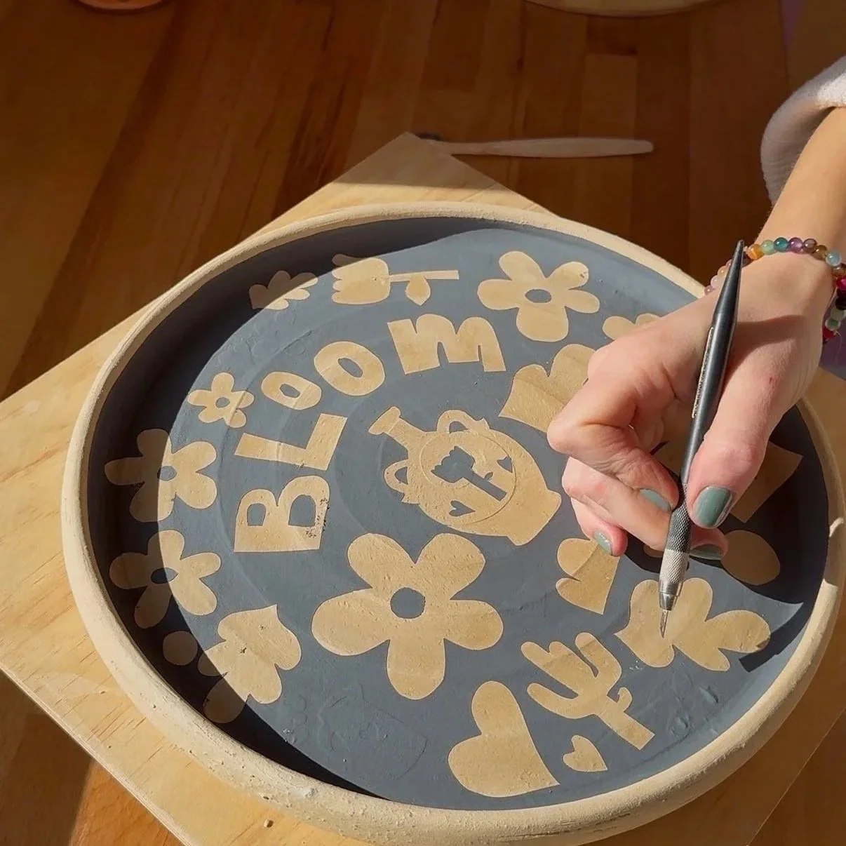 Clay work and stencil cutting will take place at your location, with the session moving outside toward the end of the workshop for aerosol work. Collection or shipping of fired pieces will need to be arranged.